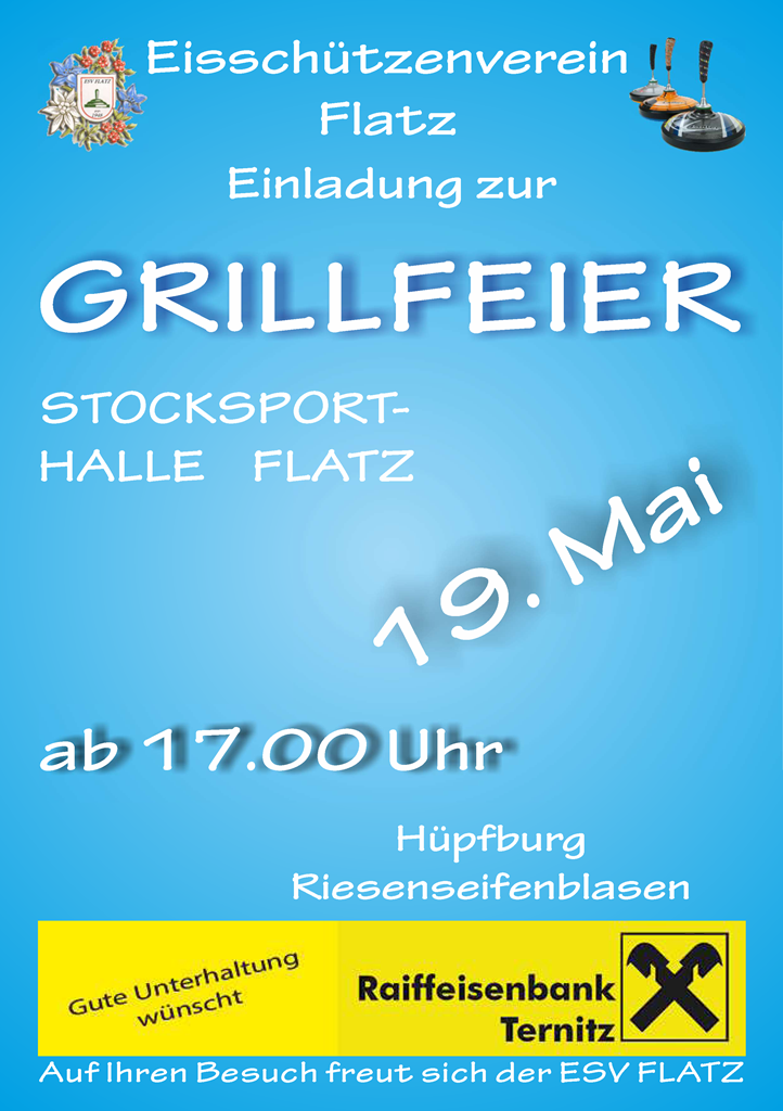Am Samstag, den 18. Mai 2019 fand die Grillfeier ab 17 Uhr in der Stocksporthalle in Flatz statt.