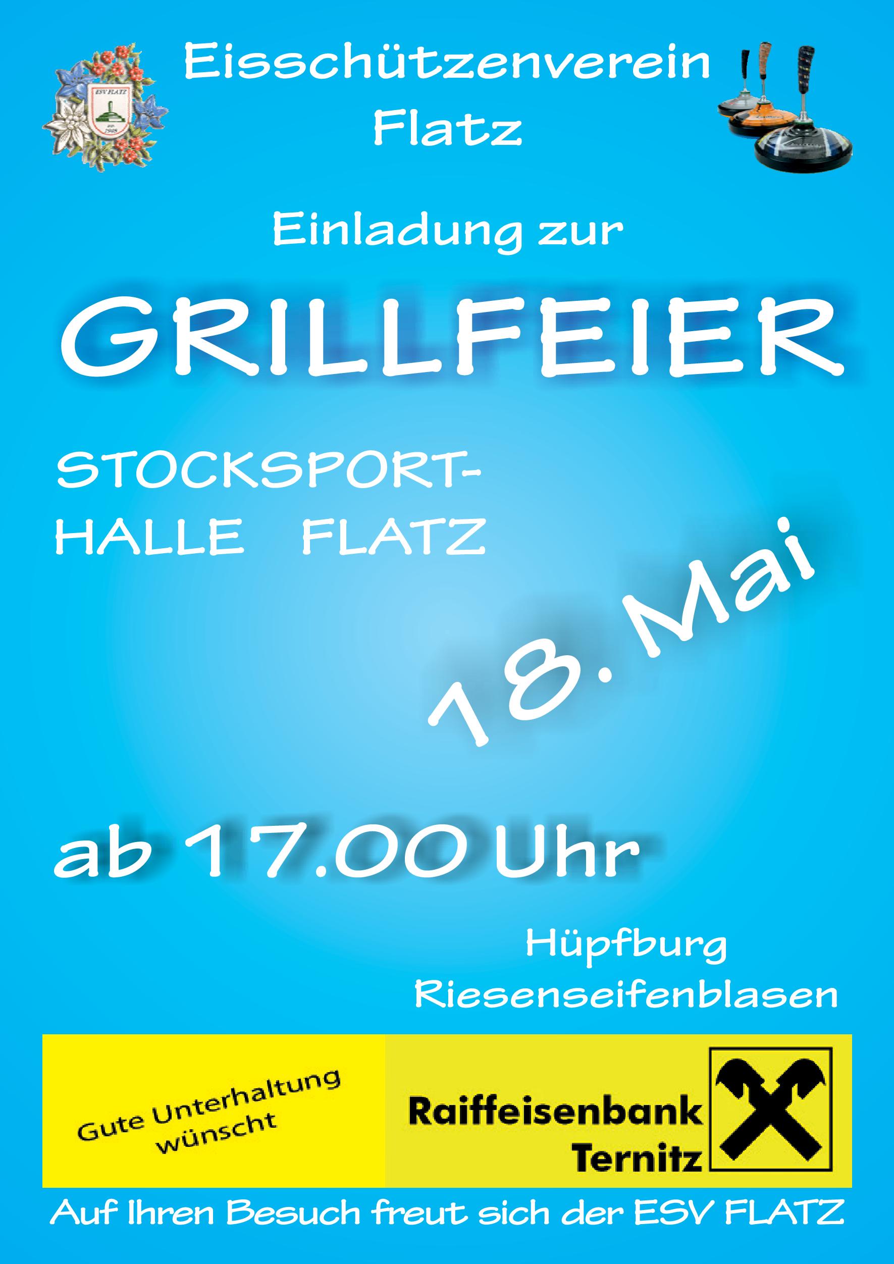 Am Samstag, den 19. Mai 2018 fand die Grillfeier ab 17 Uhr in der Stocksporthalle in Flatz statt.